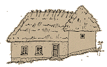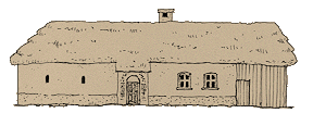terre, avec un toit à croupe recouvert de chaumes.